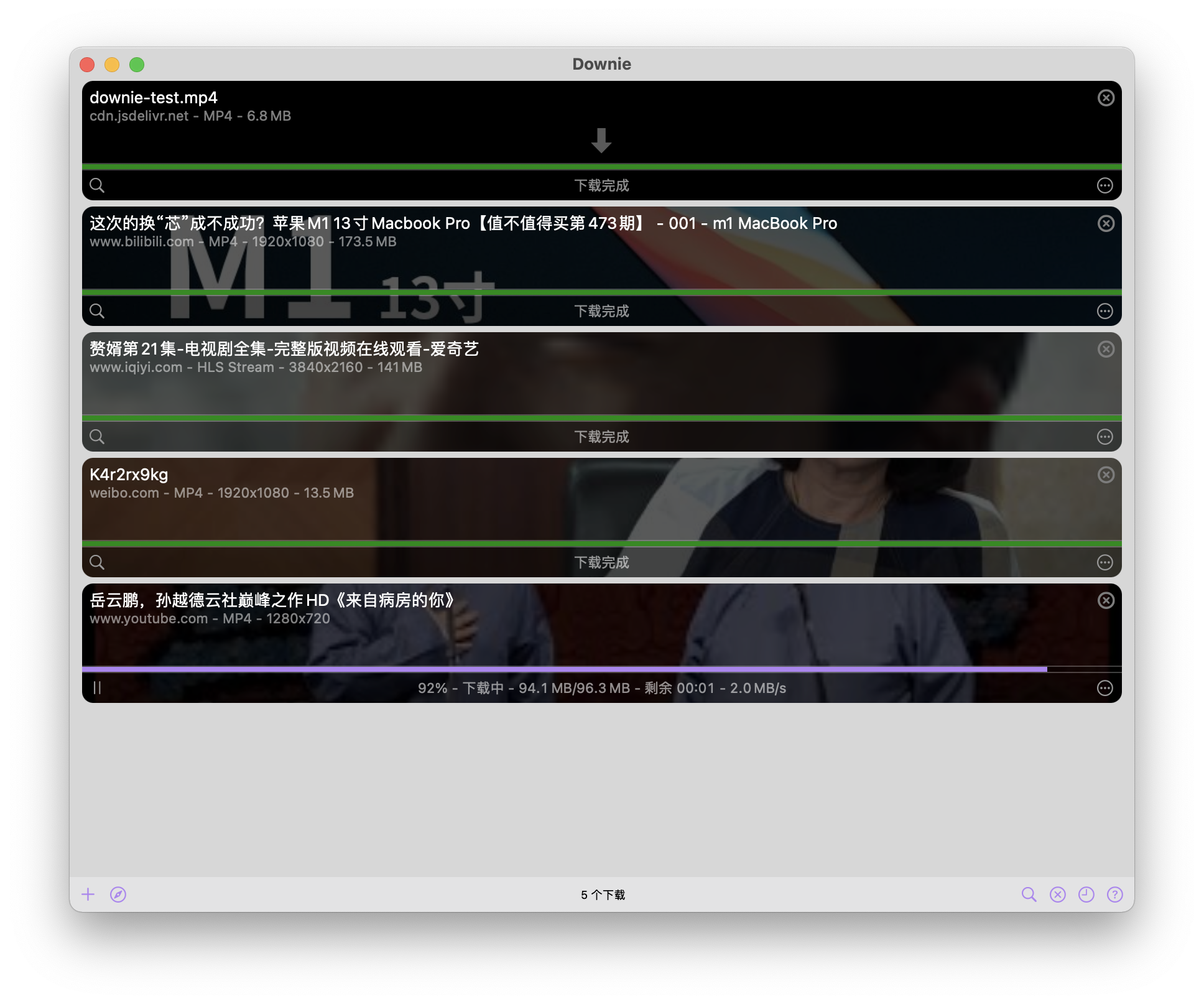 与上面的操作类似,复制爱奇艺浏览器链接并在Downie中复制即可下载视频